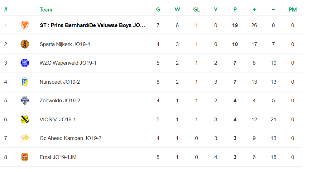 Mooi nieuws van onze vrienden bij s.v. Prins Bernhard. Afgelopen zaterdag is één van onze combinatie teams, Prins Bernhard/De Veluwse Boys JO19-1, kampioen geworden in de 3e klasse (2e fase najaar) met maar liefst negen punten voorsprong op de nummer 2 in hun poule.